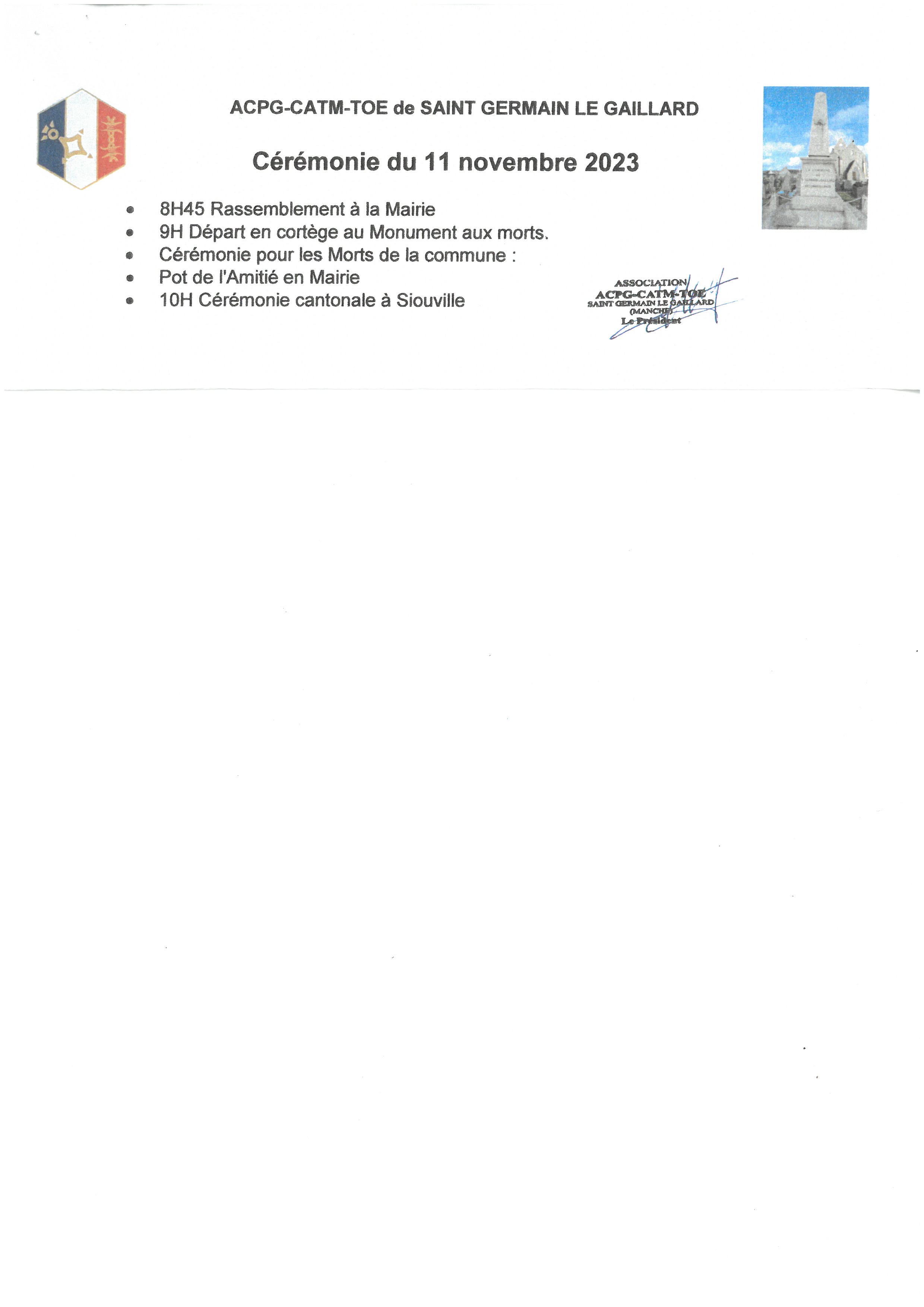 Monsieur le Président des Anciens combattants CPG-CATM-TOE de St Germain Le Gaillard,