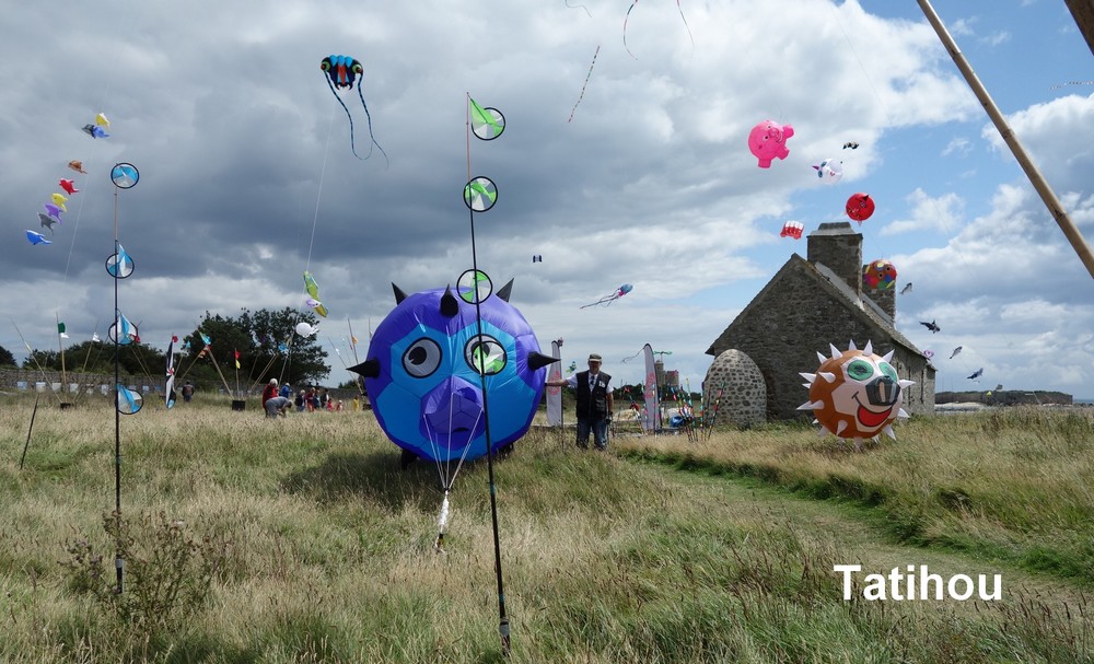 10ème édition du festival Et Vole Eole sur l’île de Tatihou les 1er et 2 avril 2023. Avec Ventissimo l'association Cerf-Volant Club de Cherbourg, l’association Dans le fil du vent et tous les cerfvolistes présents. Il y a eu nettement moins d'enfants que d'habitude, seulement 20 cerfs-volants construits par les enfants à l'atelier et à peine la moitié des bonbons lâchés habituellement, 25 parachutages de doudous ont quand même pu être réalisés. La pluie annoncée pour le samedi et le dimanche matin, l'absence de vacances scolaires et le bug informatique dans les réservations sur l'amphibie expliquent ce constat. Les éditions se suivent et ne se ressemblent pas, le groupe évolue, la météo n'est jamais la même. Par contre la bonne humeur, et les échanges amicaux sont le moteur de ce festival.