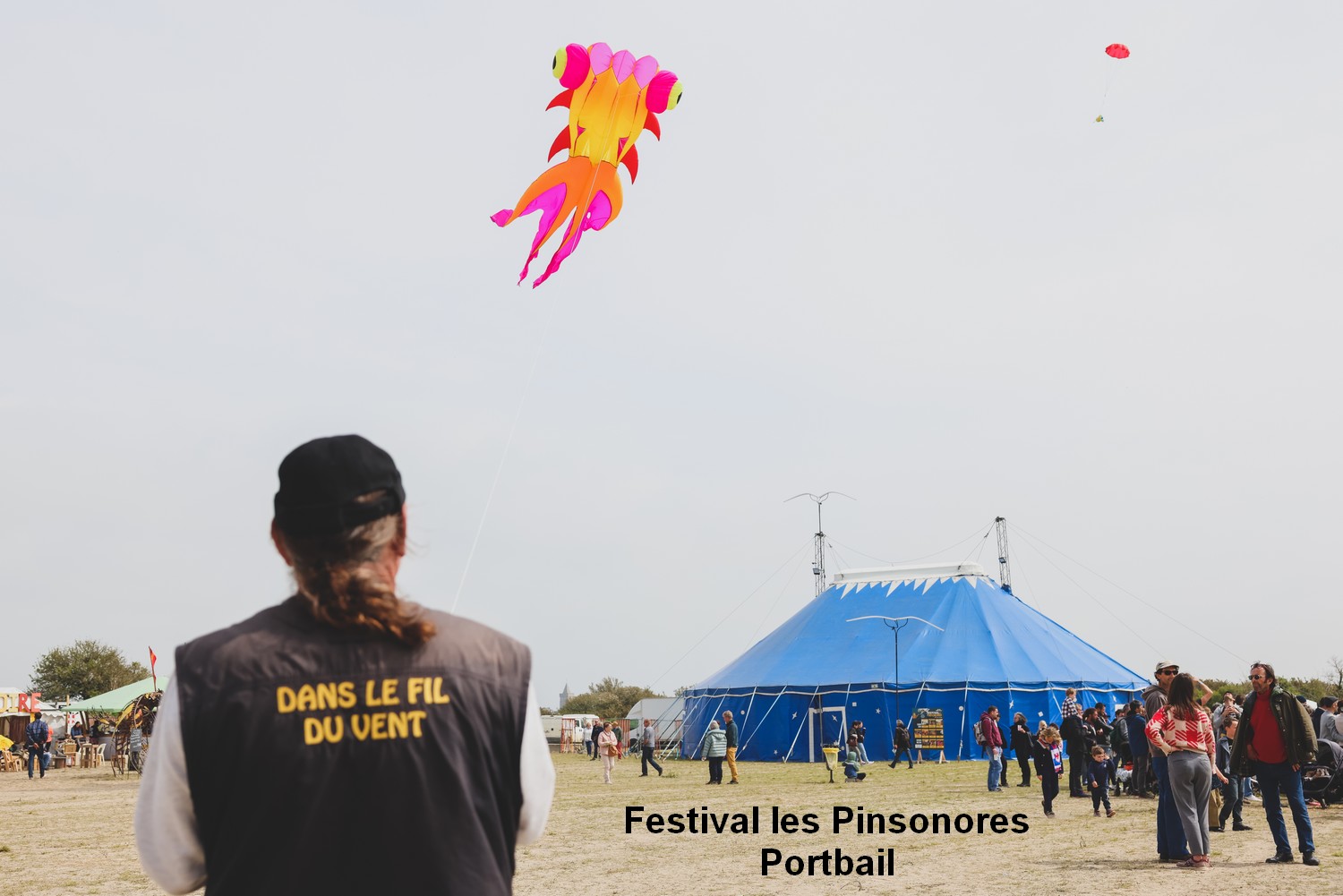 es 29 et 30 avril 2023 Festival Les Pinsonores à Portbail. Les Pinsonores invitent des associations locales à proposer des animations ou des ateliers en lien avec le terroir, l’artisanat, la pédagogie et la nature. Cette année nous avons été invité à le 2ème édition de ce festival, nous avons réalisé 42 parachutage de doudous, lâché 3 kg de bonbons pour le grand plaisir des enfants et mis en œuvre 2 grands cerfs-volants et 6 cerfs-volants coeur. Une ambiance assurée avec plusieurs concerts sur le week-end. https://www.lespinsonores.fr/